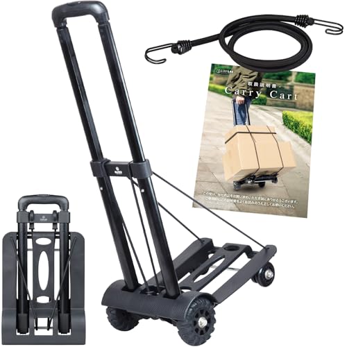 【所ジョージの世田谷ベース掲載】 キャリーカート 折りたたみ 『キャンプインストラクター監修』 コンパクト 軽量 小さい アウトドア 4輪 台車 (※当社オリジナル荷締めゴム付き)L.Y.F LAB… (BLACK)